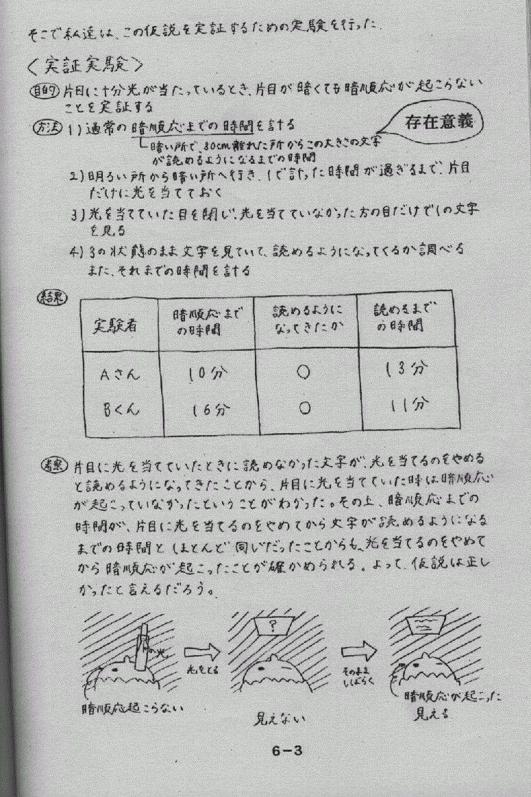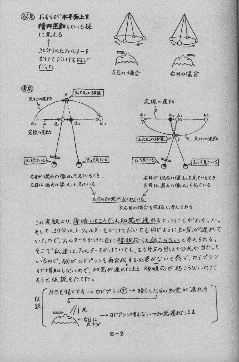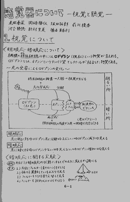 網膜の桿体 (かんたい) 細胞 の中には、ロドプシン (視紅) という物質が含まれる。その増減により 明順応・暗順応が起こる。